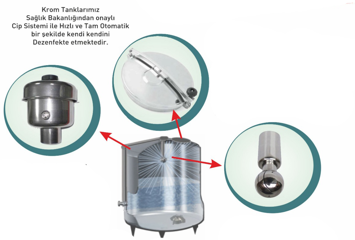 Firmamız fabrikalarını ihtiyacı doğrultusunda belirli bölgelere krom su tankları yerleştirerek firmaların içme suyu ihtiyaçlarını karşılamaktadır. Tüketicinin günlük ihtiyacı 1 Ton’u geçmesi durumunda istenilen bölgeye (Krom) su tankı ücretsiz olarak yerleştirilecektir. Su tanklarının periyodik olarak dezenfeksiyon işlemleri fabrikamız tarafından yapılır. Her ay il sağlık müdürlüğünden alınana analiz raporu düzenli olarak gönderilir.